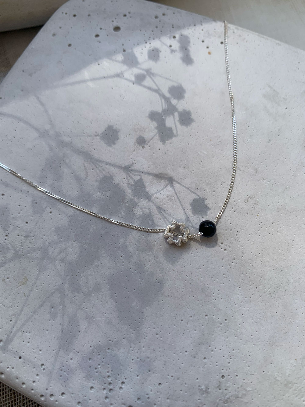 Κολιέ με ασημένιο σταυρό και ημιπολύτιμους λίθους – Μαύρη Τουρμαλίνη