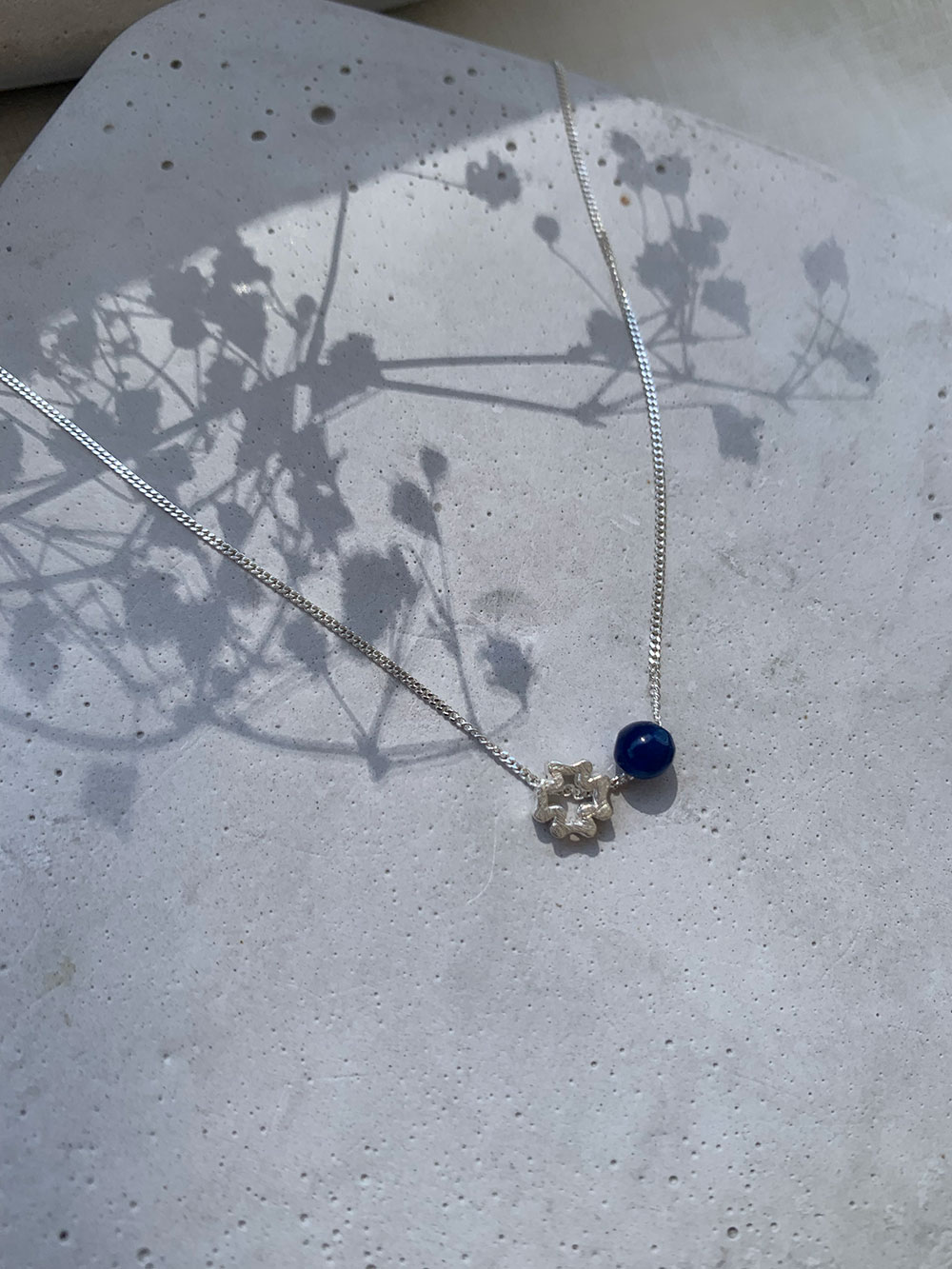 Κολιέ με σοδαλίτη και ασημένιο σταυρό. 40 cm αλυσίδα με ασήμι 925 4 cm επέκταση με ασήμι 925 κούμπωμα με ασήμι 925 και στοιχείο σταυρός από ασήμι 925