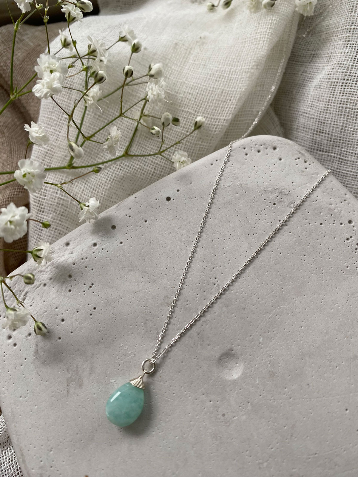 Κολιέ με ημιπολύτιμους λίθους – Aquamarine. 40 cm αλυσίδα ασήμι 925, 4 cm επέκταση με ασήμι 925 και κούμπωμα ασήμι 925.