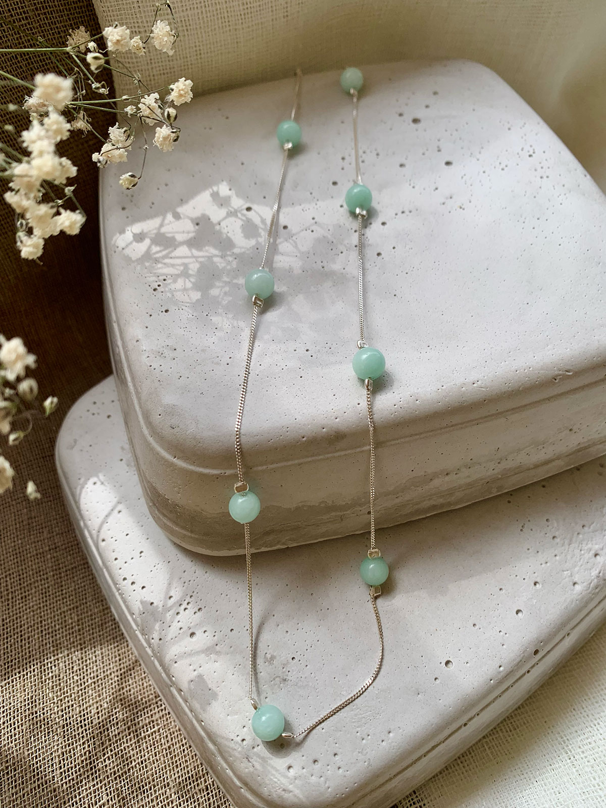 Κολιέ με ημιπολύτιμους λίθους – Aquamarine. 40 cm αλυσίδα ασήμι 925, 4 cm επέκταση με ασήμι 925 και κούμπωμα ασήμι 925