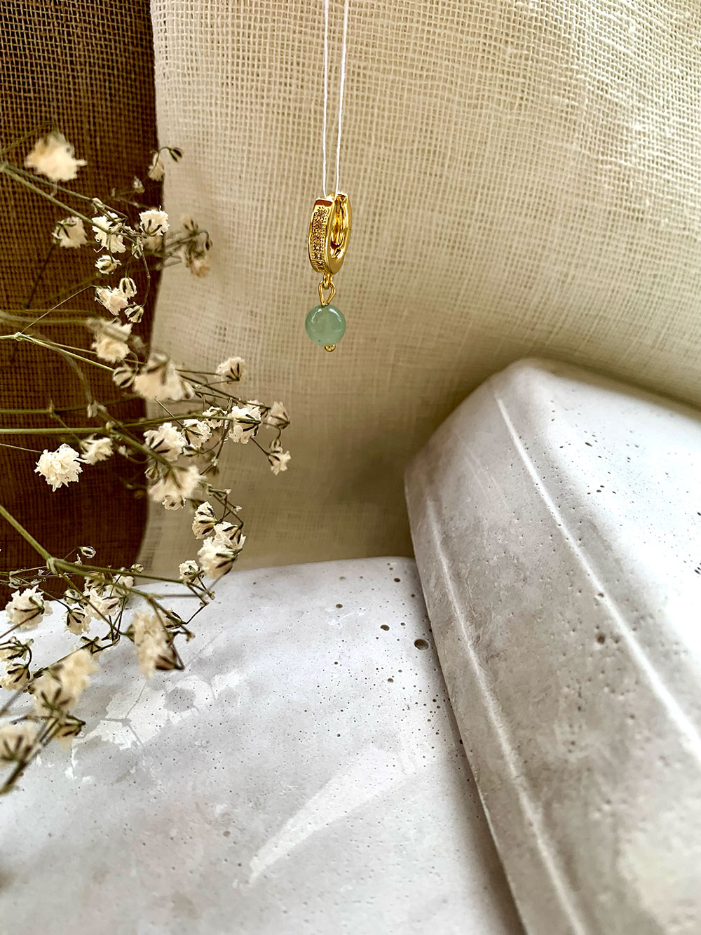 Σκουλαρίκια με ημιπολύτιμους λίθους –  Aquamarine. Κρίκος από επιχρυσωμένο ασήμι 925 με ζιργκόν, διαμέτρου 1,5 cm και κούμπωμα από επιχρυσωμένο ασήμι 925.