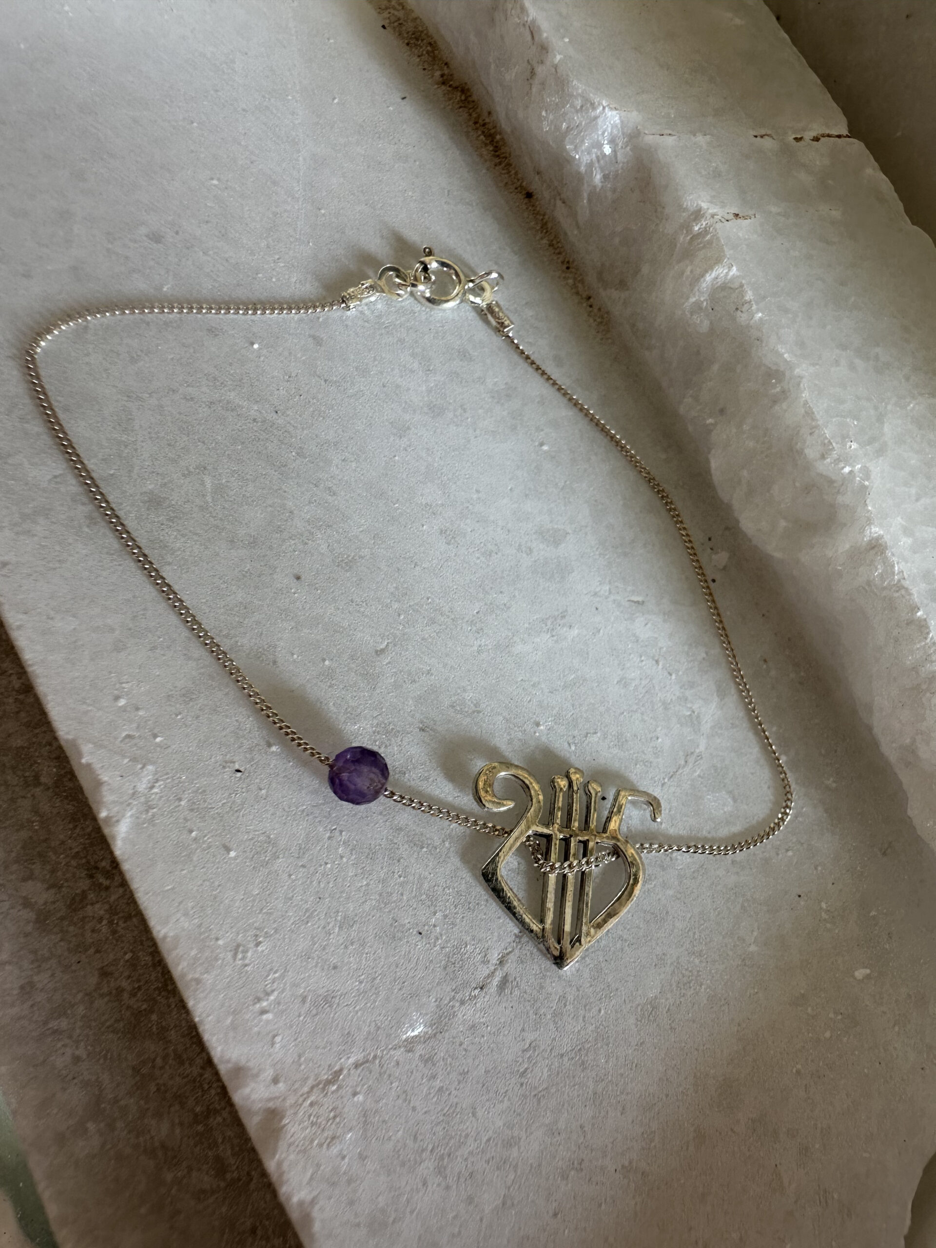 Βραχιόλι Γούρι 2025 με Στοιχείο Λύρα από Ασήμι 925 και Αμέθυστο