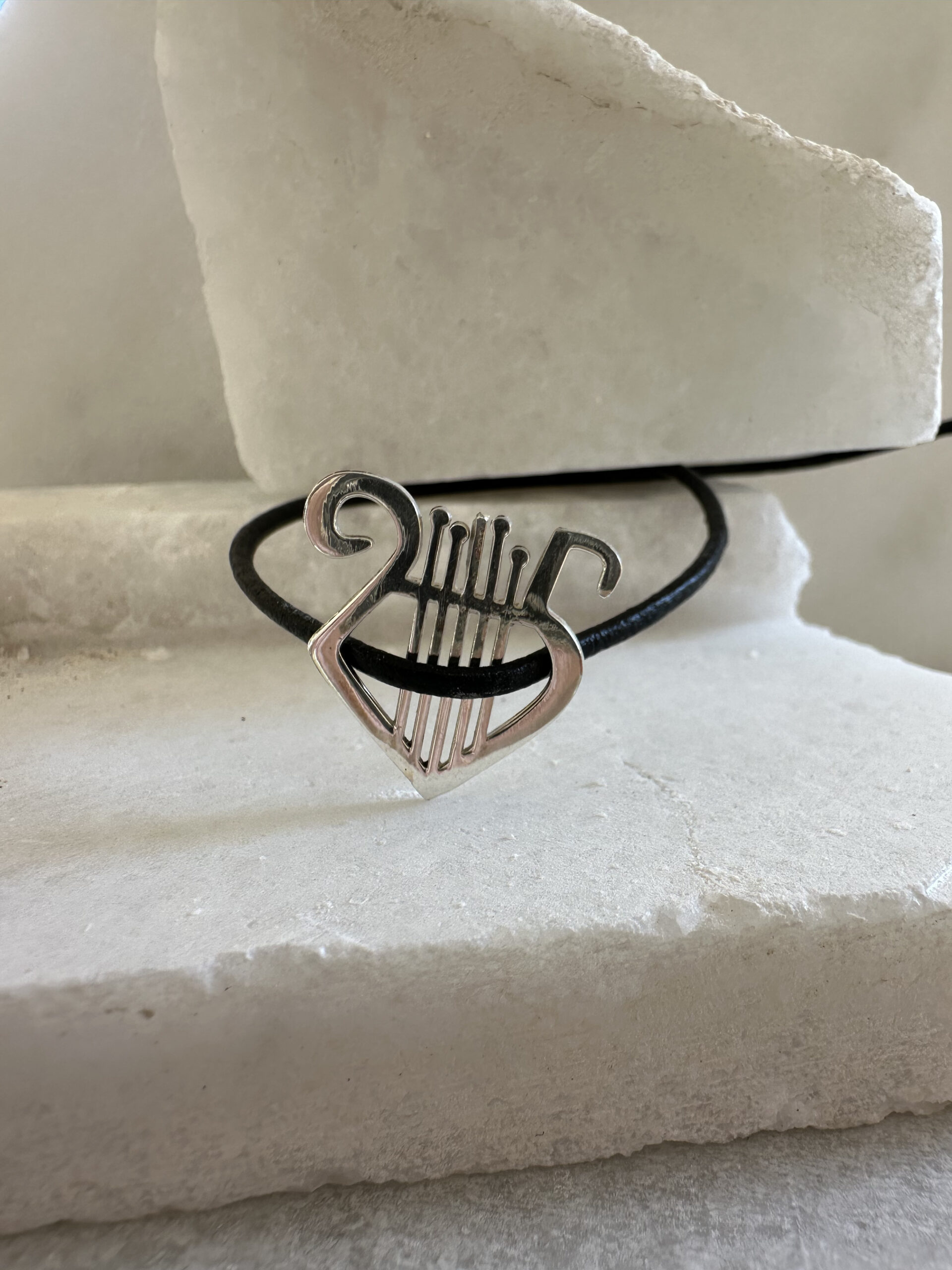 Κομψό και ευέλικτο, αυτό το γούρι για το 2025 είναι φτιαγμένο από μαύρο δερμάτινο κορδόνι, διακοσμημένο με το σύμβολο της λύρας από ασήμι 925. Ρυθμιζόμενο για τέλεια εφαρμογή, αποτελεί μια μοντέρνα επιλογή για κάθε στυλ.