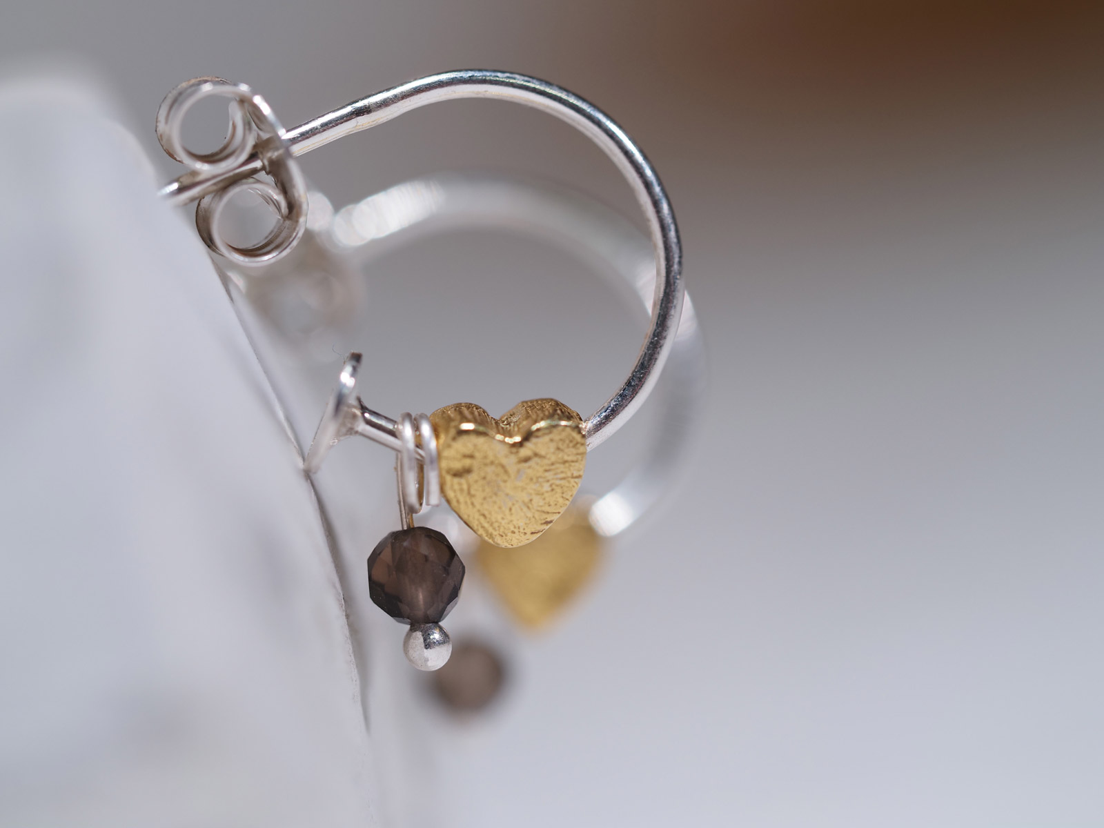 Κρίκος από ασήμι 925, διαμέτρου 1,5 cm με στοιχείο καρδιά από επιχρυσωμένο ασήμι 925 και κούμπωμα από ασήμι 925